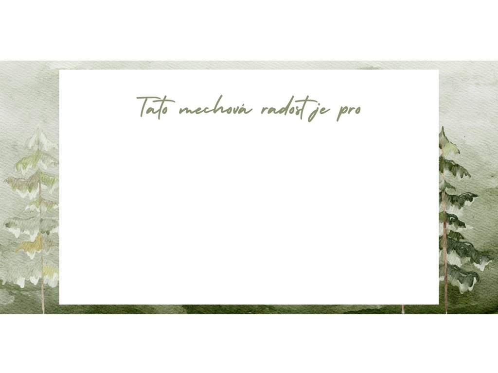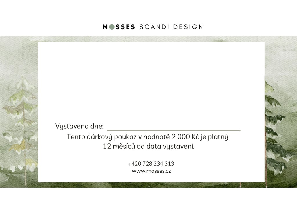 Poukaz vám předáme i spolu s obálkou a zelenou pečetí z vosku, aby to byl od vás dárek se vším všudy. Přiložíme i průvodní informace k produktům, které si u nás můžete objednat, aby obdarovaný/á věděl/a, na co se může od MOSSES těšit.